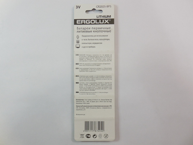 литиевая ERGOLUX в блистере, цена за 1 штуку