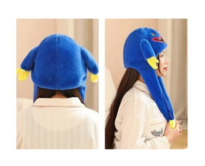 Шапка Хагги Вагги Huggy Wuggy хаги ваги плей тайм poppy play игра Poppy Playtime синяя с двигающимися ушами светодиодная — 1 шт.