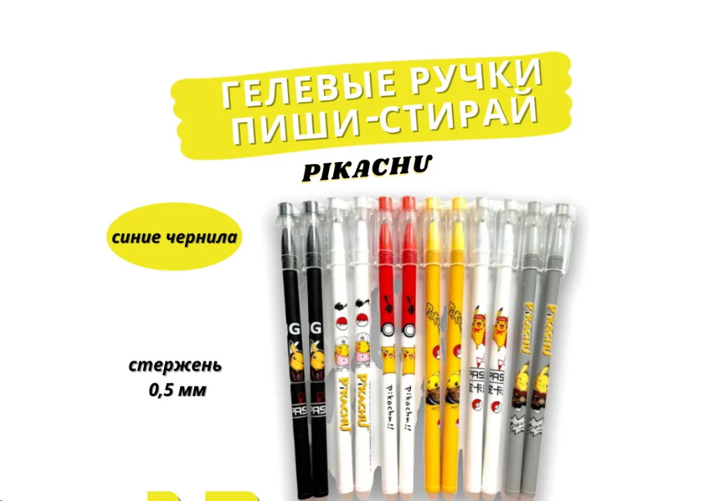 Гелевые чернила равномерно распределяются по бумаге и быстро сохнут, обеспечивая красоту Вашего почерка и рисунков. С этими ручками вы легко можете стереть написанное, для этого на конце каждой ручки имеется ластик. Однако, если вы оставите написанное на несколько дней, стереть написанное будет сложнее.Удобный корпус с рисунком «Пикачу» понравится, как взрослому так и ребенку и позволит быть в тренде. Набор ручек будет отличным подарком на любой праздник, а также позволит раскрасить яркими красками унылые будни.
