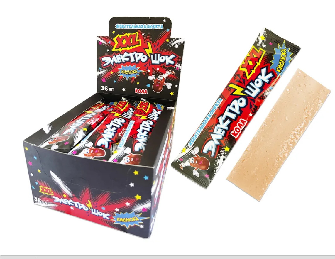 Кислая жевательная конфета Электрошок ХХL со вкусом колы 1шт 25гр.