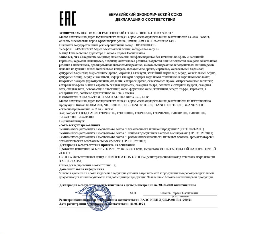 Сахар, глюкозный сироп, патока, резиновая основа, агент влагоудерживающий (глицерин), эмульгатор (соевый лецитин), регулятор кислотности (лимонная кислота), глазирователь (карнаубский воск), агент антислеживающий (тальк), ароматизаторы (клубника, арбуз, банан), красители Е102, Е129, Е133. Не рекомендовано детям до 3-х лет. Содержит красители Е102, Е129, которые могут оказывать отрицательное влияние на активность и внимание детей.
