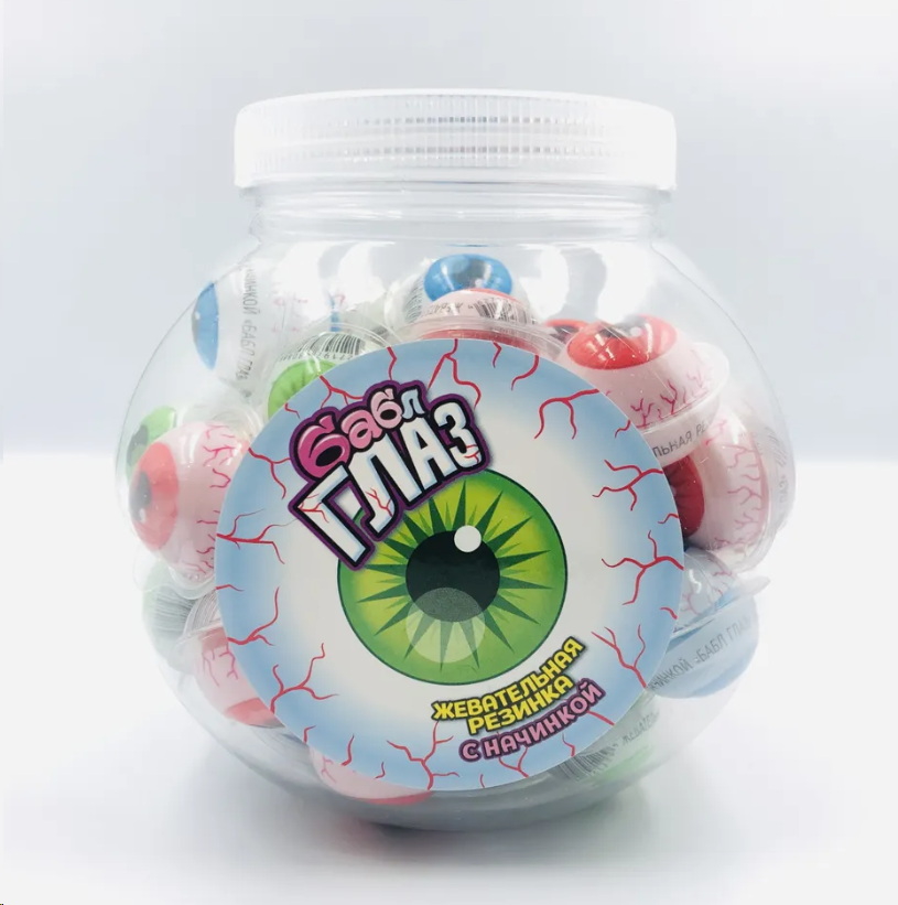 Жевательная резинка с начинкой БАБЛ ГЛАЗ 1шт по 12гр. Пузыри размером с голову. Канди Клаб. Жвачка ассорти вкус клубника арбуз банан.