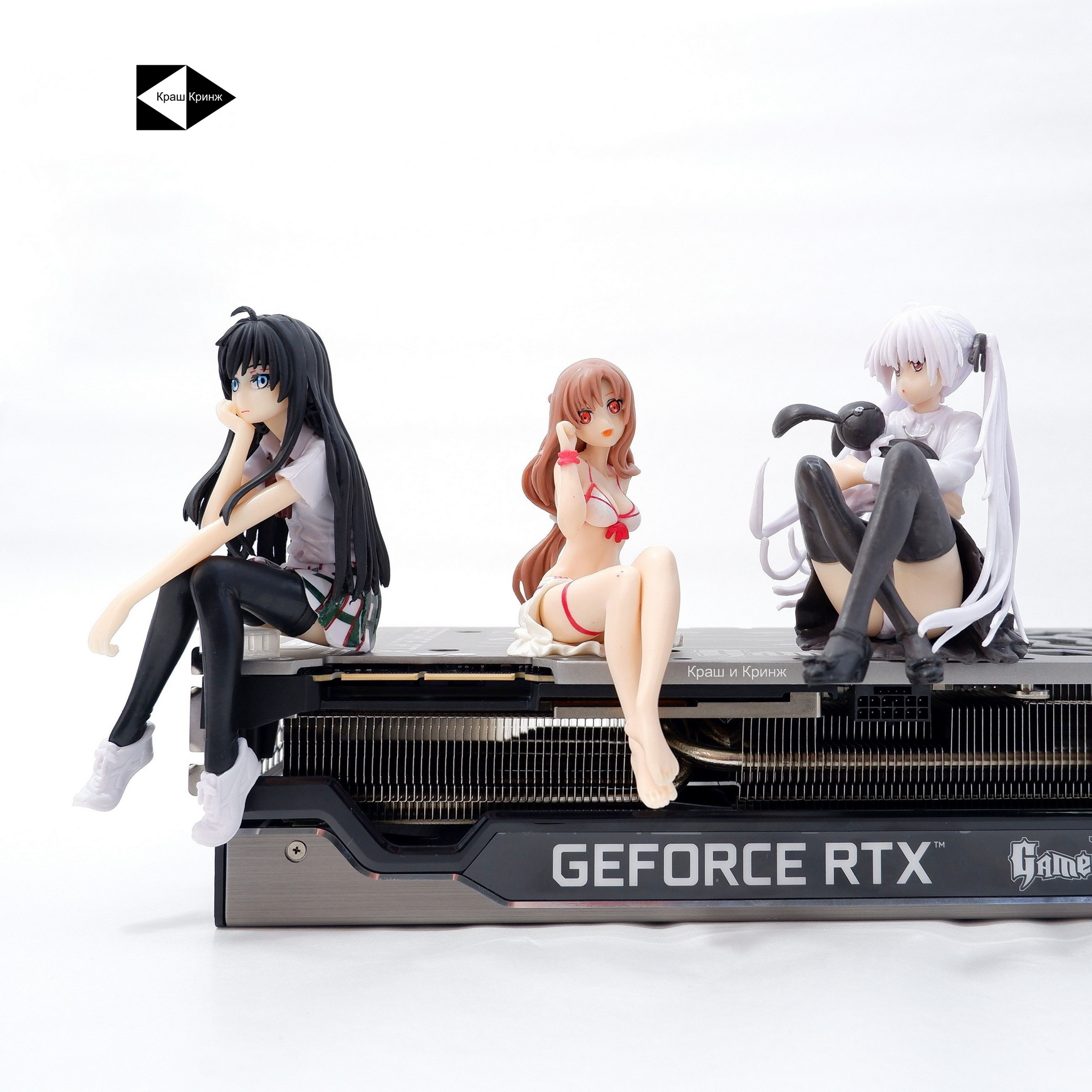 Фигурка сидячая, можно сажать на комплектную подставку, видеокарту, монитор и т.п. Сидит уверенно не падает.