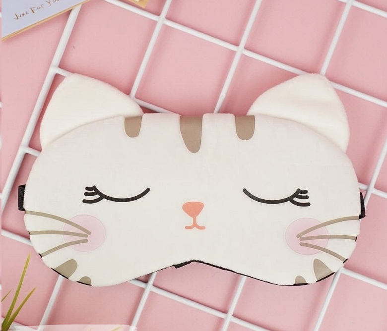 Светонепроницаемая 3D маска для сна с изображением котиков. В комплекте прилагается холодный компресс, который успокаивает глаза. Компресс можно легко вытащить, если нужно постирать маску.