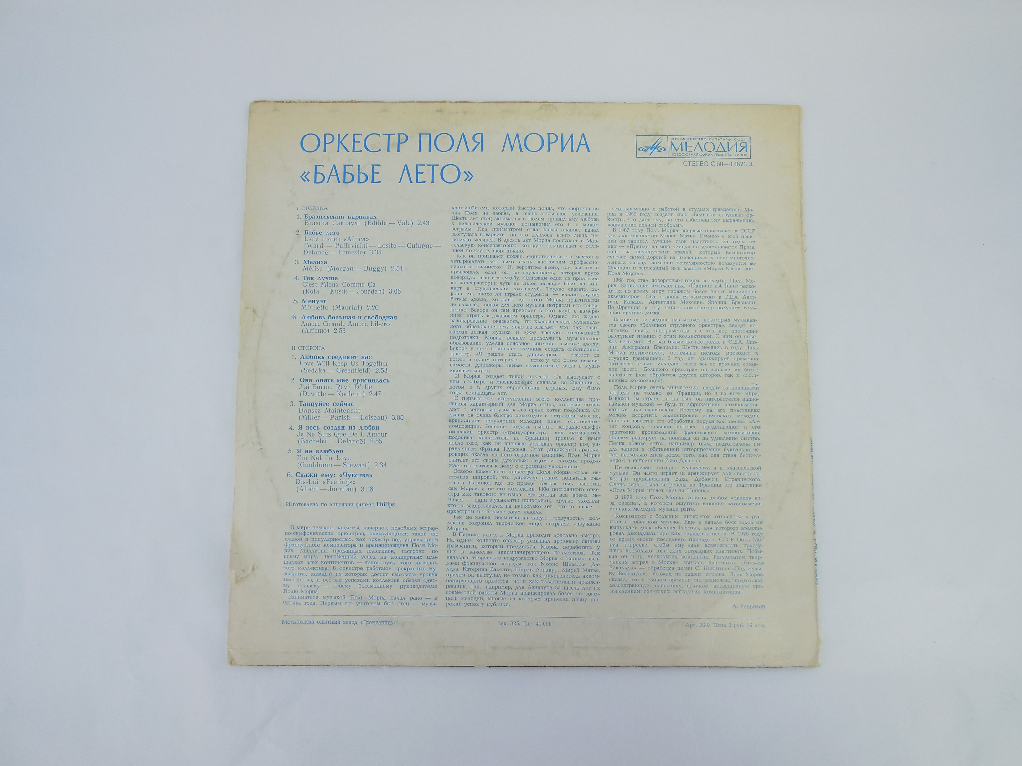 Пластинка оркестр Поля Мориа Бабье лето - Pic n 306389