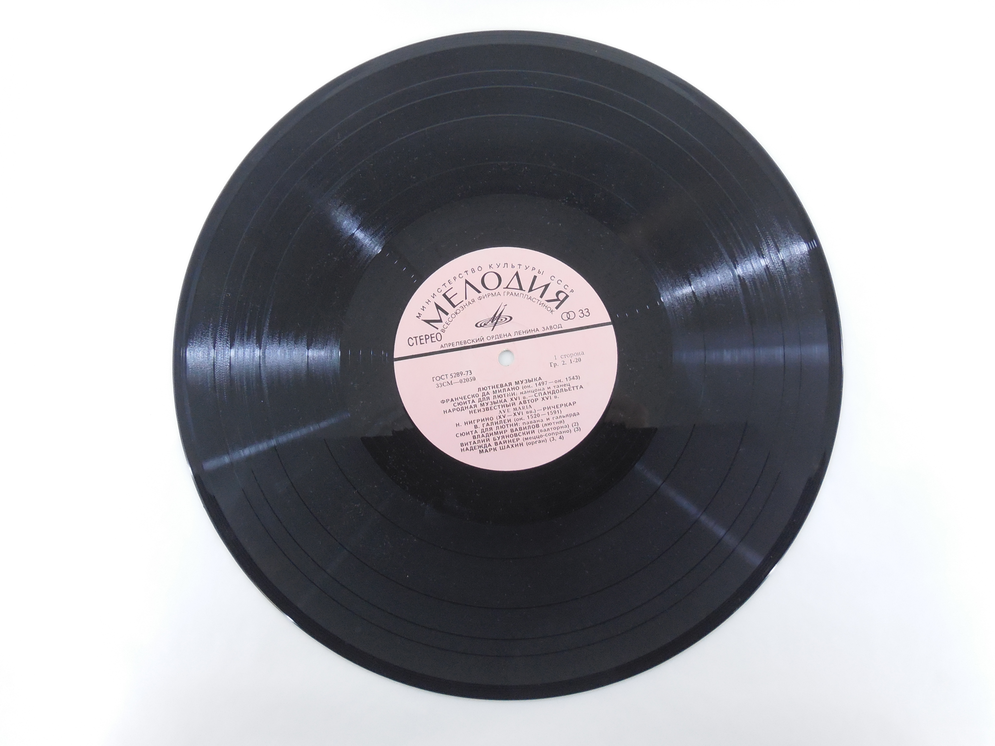 Пластинка Лютневая музыка, Lute Music, СМ 02059-60, 1977г.