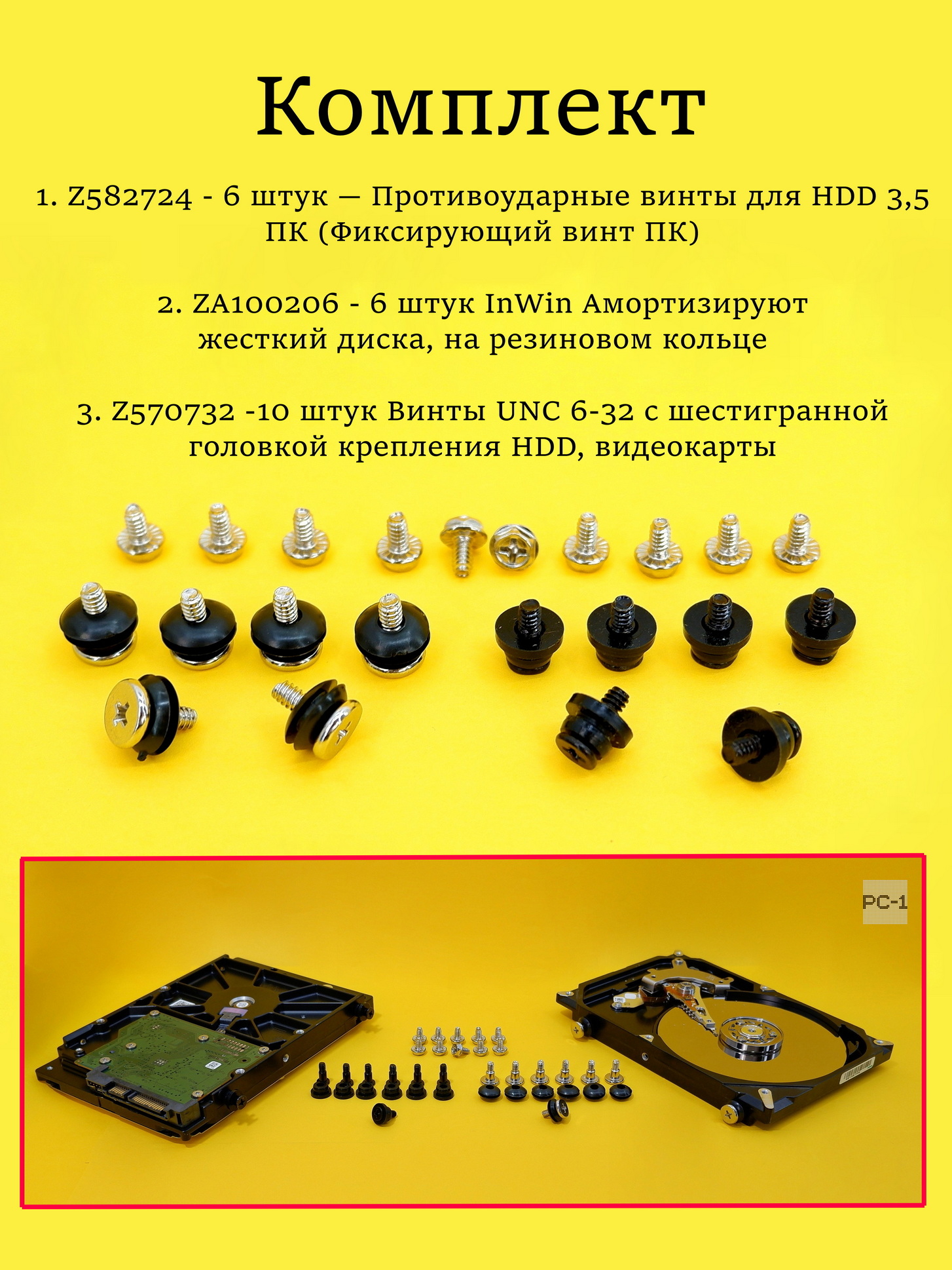 1. Z582724 6 штук — Противоударные винты для HDD 3,5 ПК (Фиксирующий винт ПК).