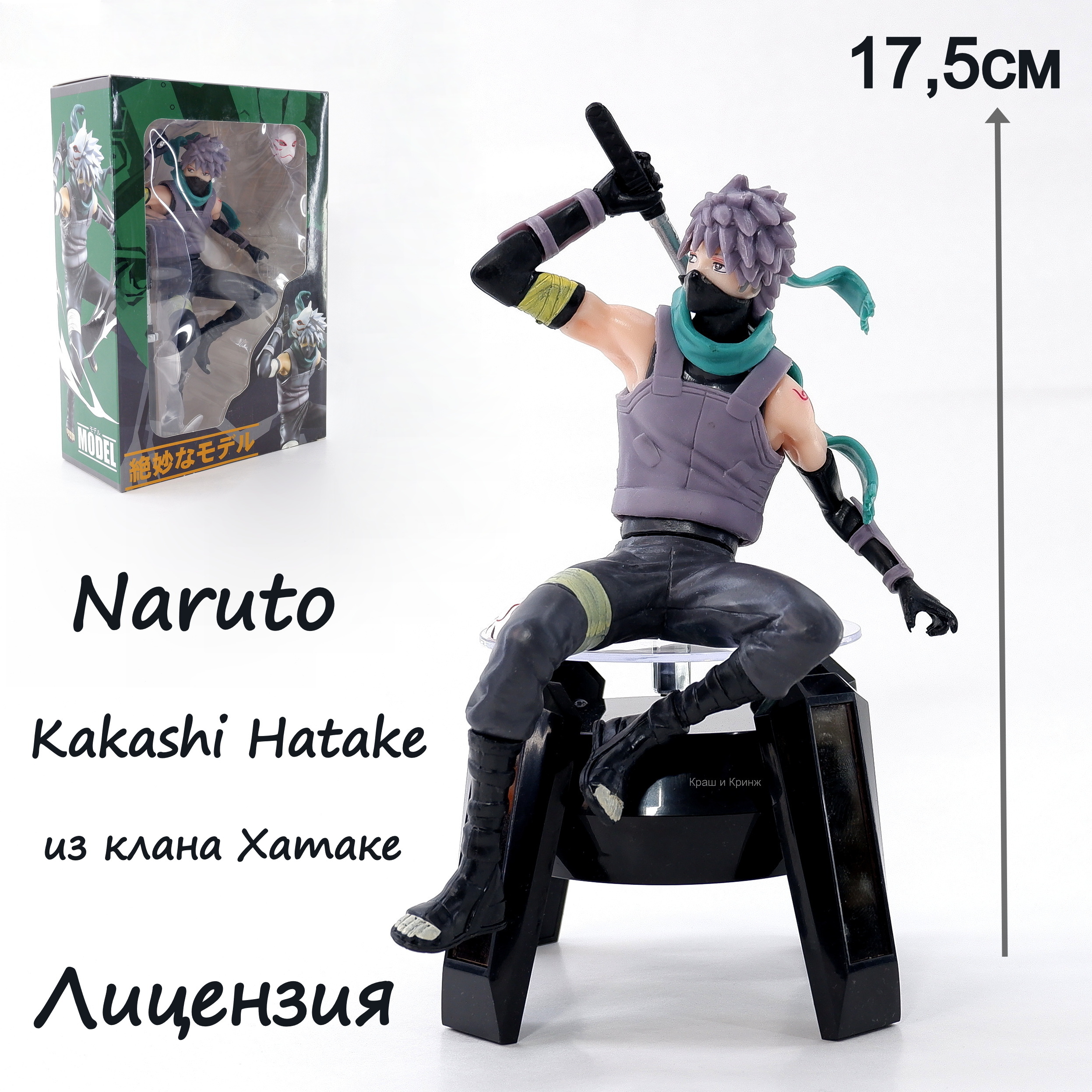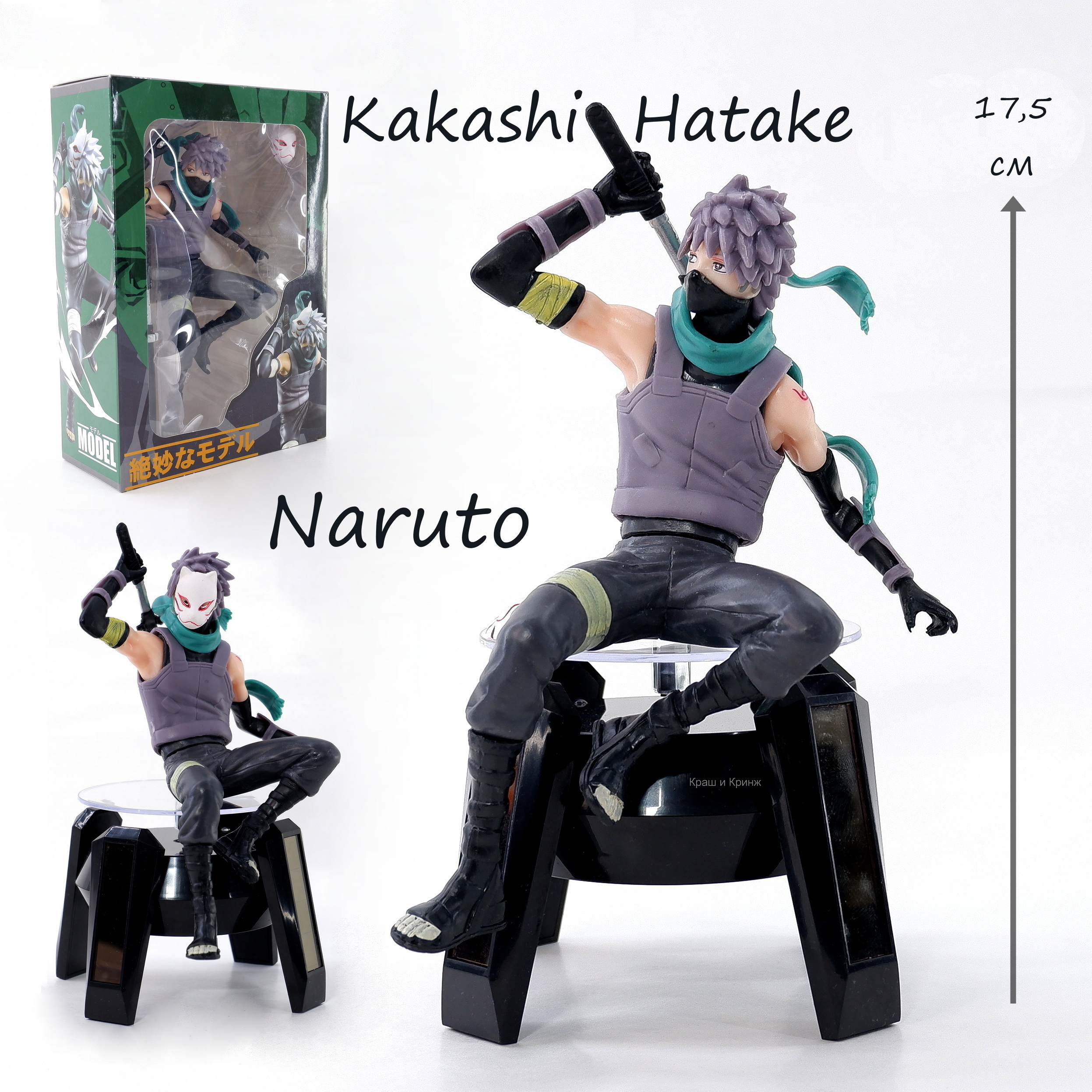 Фигурка Хатаке Какаши (Kakashi Hatake) — шиноби Конохагакуре из клана Хатаке из аниме Наруто 17,5 см в подарочной коробке. Съёмная маска и меч в комплекте.