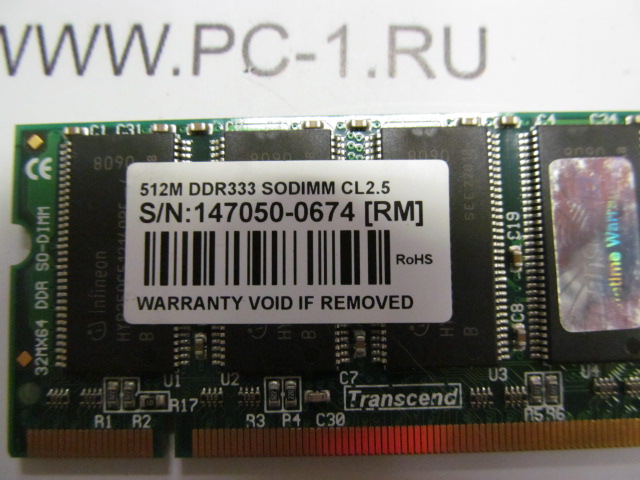 Модуль памяти SODIMM DDR333 512Mb PC2700 TranscendОткрыть в новом окне