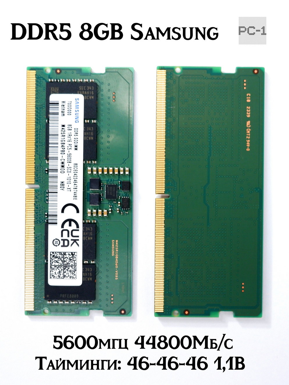 Модуль памяти DDR5 8GB Samsung Sodimm 5600мгц 44800Мб/с Тайминги: 46-46-46 M425R1GB4PB0-cwmod для ноутбука