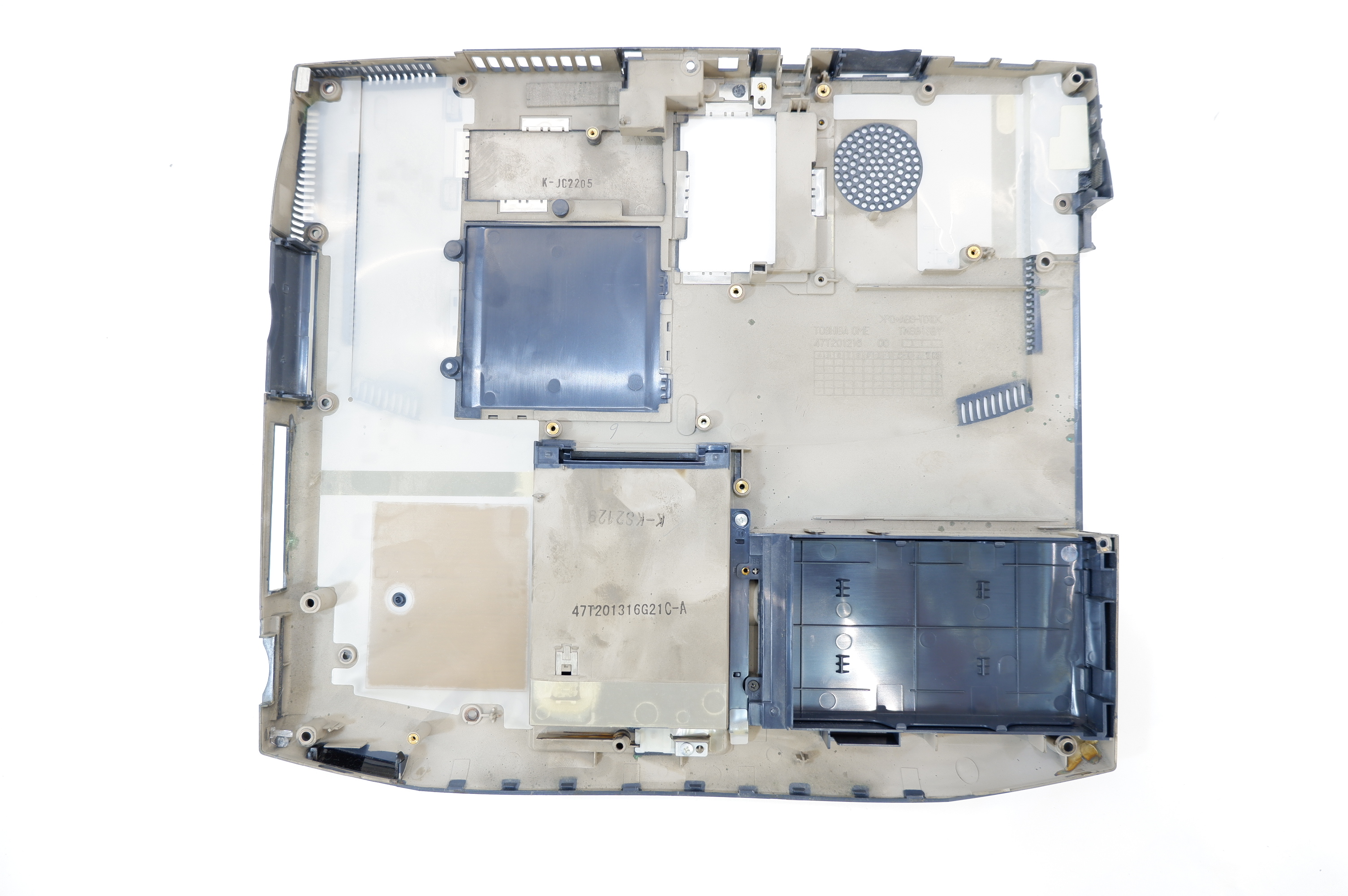Нижний поддон от ноутбука Toshiba Satellite 5005-S507. Нет одной ревизионной крышечки.
