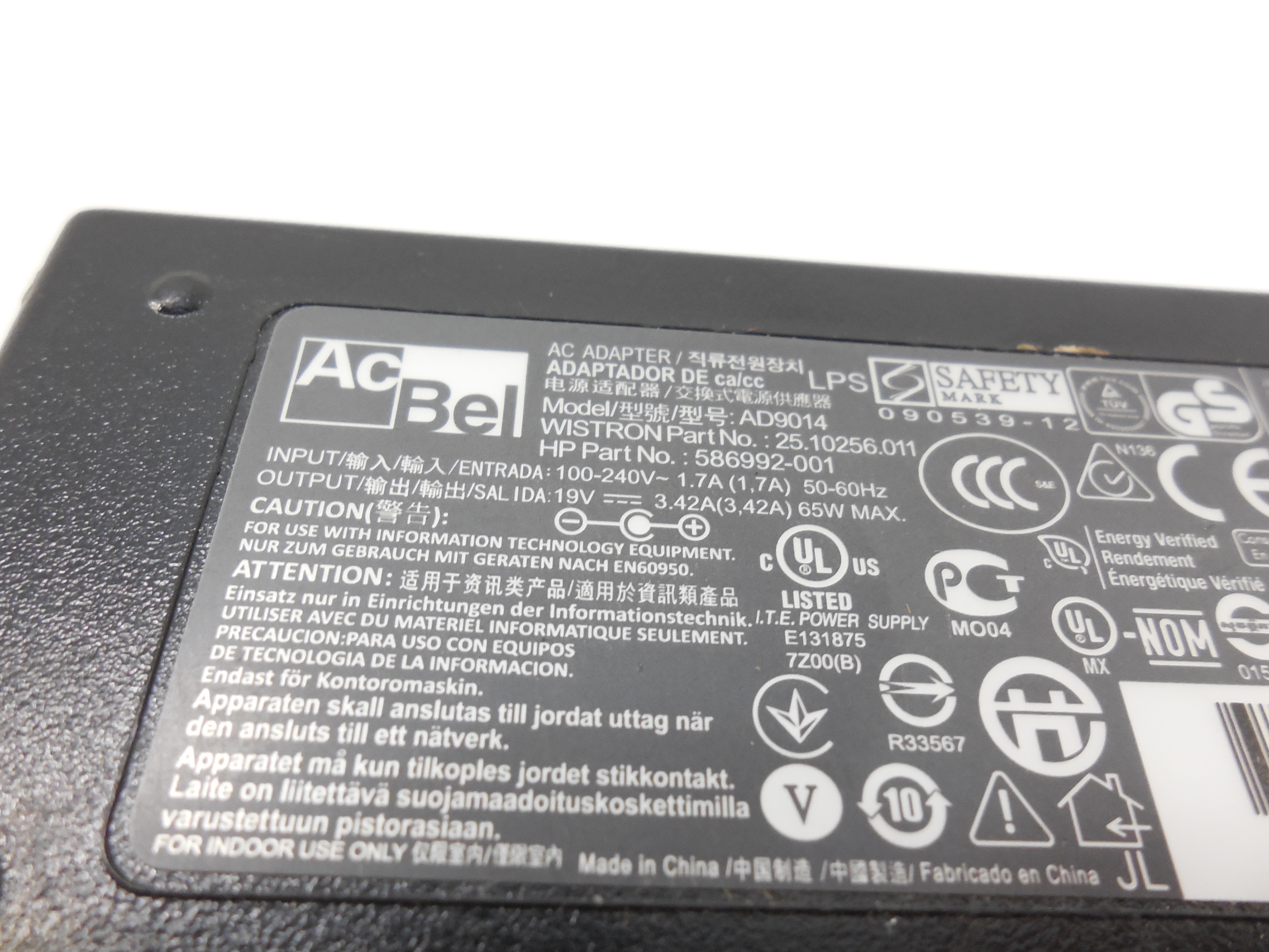 Зарядное устройство для ноутбука AC/DC Adapter AcBel AD9014 (P/N: 586992-001 ) /Output: 19V (3.42A)