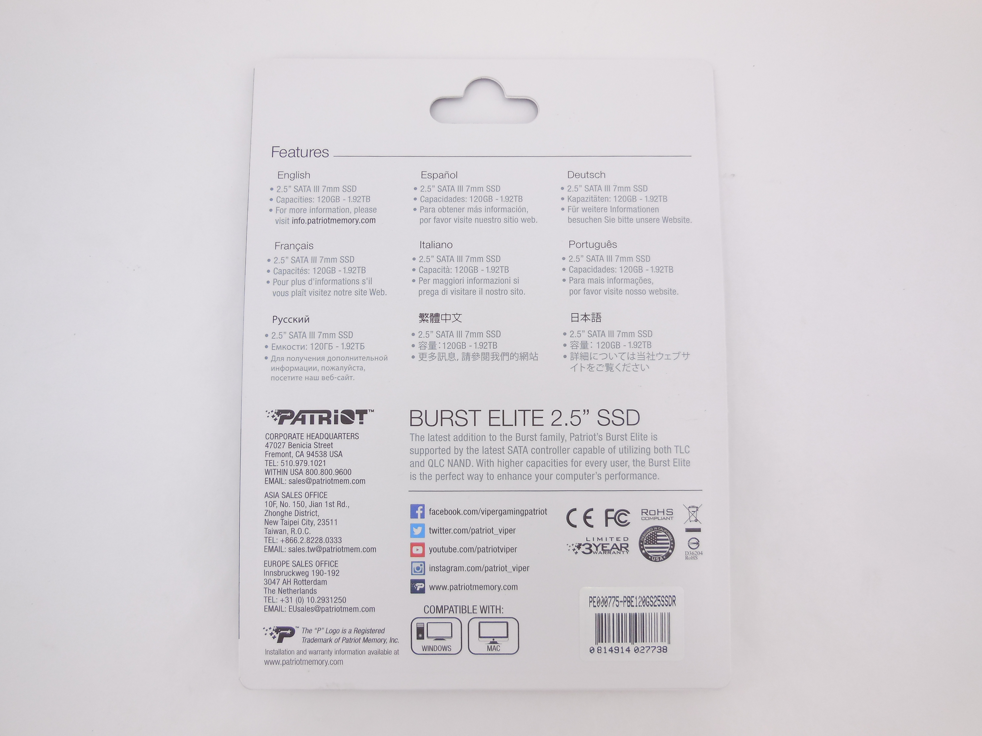Твердотельный накопитель SSD Patriot Memory Burst Elite 120 ГБ SATA PBE120GS25SSDR